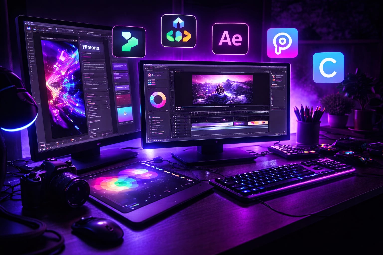 Advanced into Filmora, DaVinci Resolve, Premiere Pro, and After Effects. Entered graphic design using PicsArt, then mastering Photoshop and Canva.